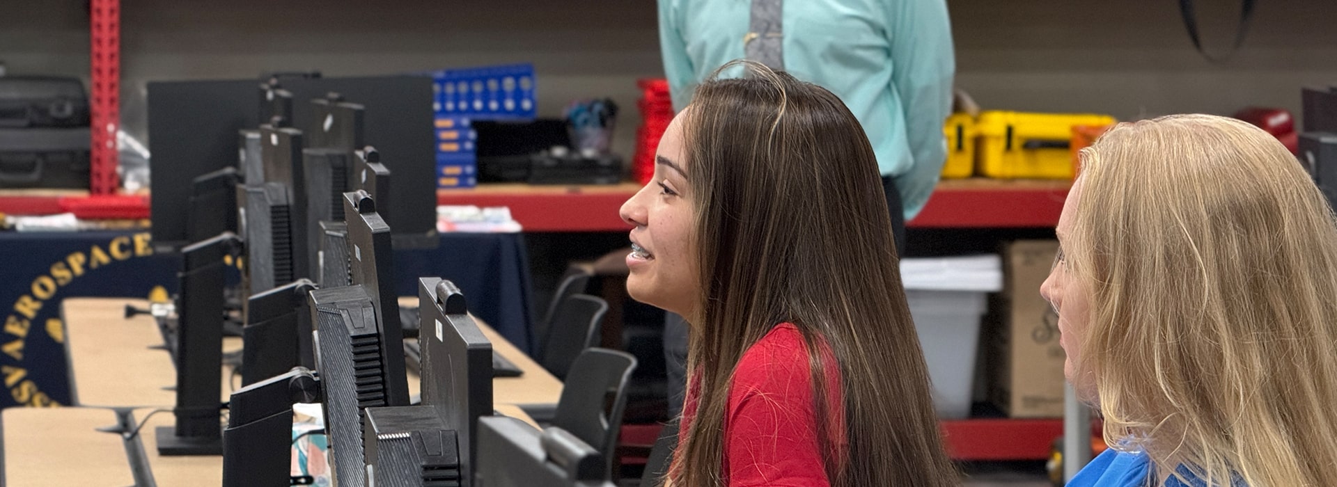 The district has invested heavily in facilities that mirror real industry settings. Dr. Rendell describes one high school where “we have an aviation program with an aircraft hangar that has two airplanes and a helicopter inside,” and another where a space mechatronics program uses the same machines employed by one of the district’s space industry partners to build spacecraft.