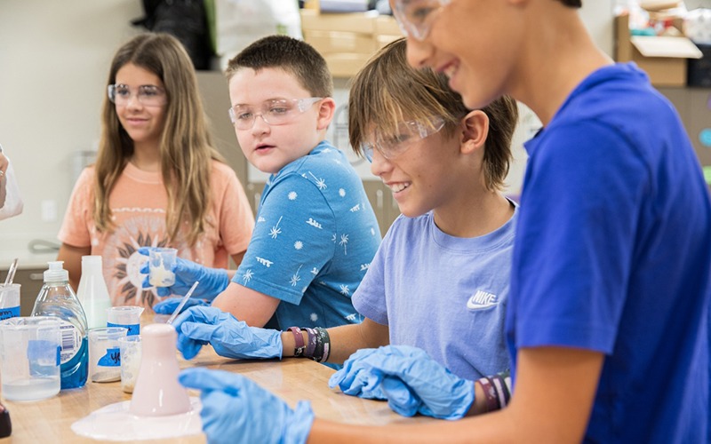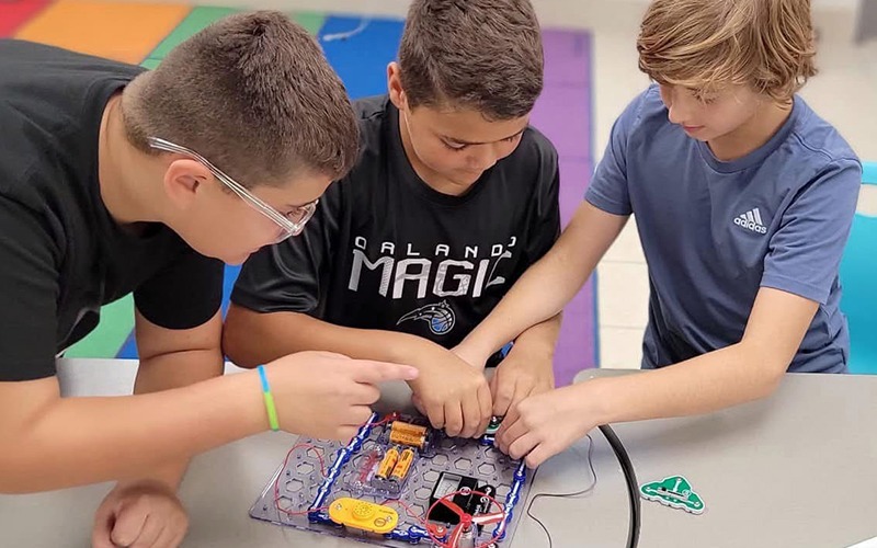 Classrooms emphasize critical thinking, experimentation, and pre-engineering skills. Partnerships with the Center for Space Education and Florida Power & Light help fund hands-on learning environments.