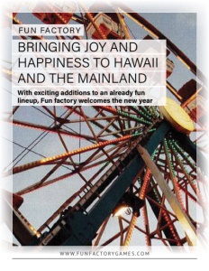 218 BUSINESS VIEW MAGAZINE VOLUME 9, ISSUE 12 BRINGING JOY AND HAPPINESS TO HAWAII AND THE MAINLAND AT A GLANCE FUN FACTORY WHAT: Family entertainment centers spread throughout Hawaii and across the Continental U.S. WHERE: Headquarters in Honolulu Hawaii WEBSITE: www.funfactorygames.com FUN FACTORY With exciting additions to an already fun lineup, Fun factory welcomes the new year