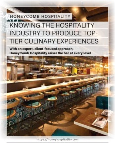 KNOWING THE HOSPITALITY INDUSTRY TO PRODUCE TOP- TIER CULINARY EXPERIENCES With an expert, client-focused approach, HoneyComb Hospitality raises the bar at every level HONEYCOMB HOSPI TALI T Y ht tps : / /honeyhospi ta l i ty. com