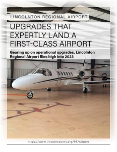 UPGRADES THAT EXPERTLY LAND A FIRST-CLASS AIRPORT Gearing up on operational upgrades, Lincolnton Regional Airport flies high into 2023 LINCOLNTON REGIONAL AIRPORT ht tps : / /www. l incolncounty. org/93/Ai rpor t