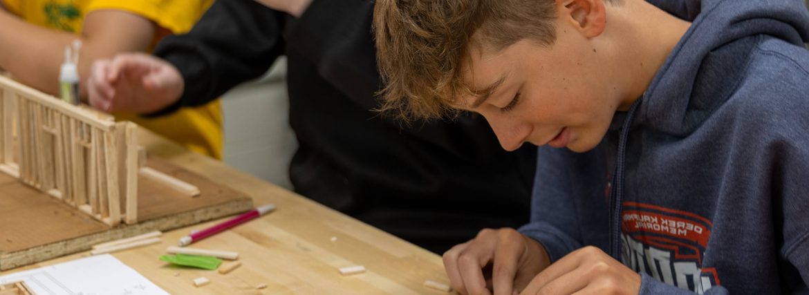 One of Yale’s standout programs is Geometry in Construction, a two-hour block where students apply geometric concepts to real construction projects. From deer blinds to storage units for the early childhood center, students experience the practical value of mathematical thinking while building teamwork, problem-solving, and trade skills.